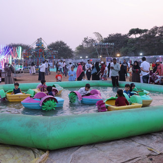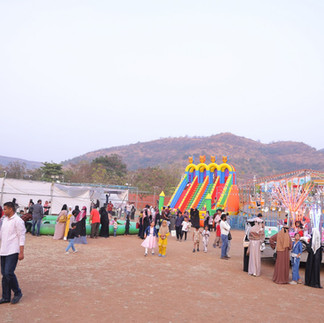 Mimicry artist Mr.Shekar from latur , Jr Ihsan Qureshi from chattisgad, Charli Chaplin , Cartoon character, Food Stall, Rides : Swing, Cross swing, Break dance ride, Boat ride, Horse Riding, Bullock cart , Camel ride, Cricket , Zorb ball, balloon shooting , Main attraction Hot Air Balloon.
